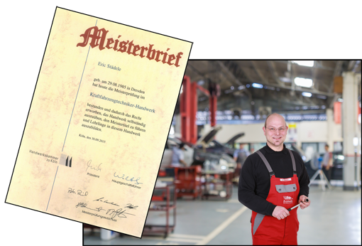 In diesem Sinne freuen wir uns besonders, unserem langjährigen Mitarbeiter Herrn Eric Städele zur bestandenen Meisterprüfung zum Kraftfahrzeugtechniker-Handwerk gratulieren zu dürfen.
