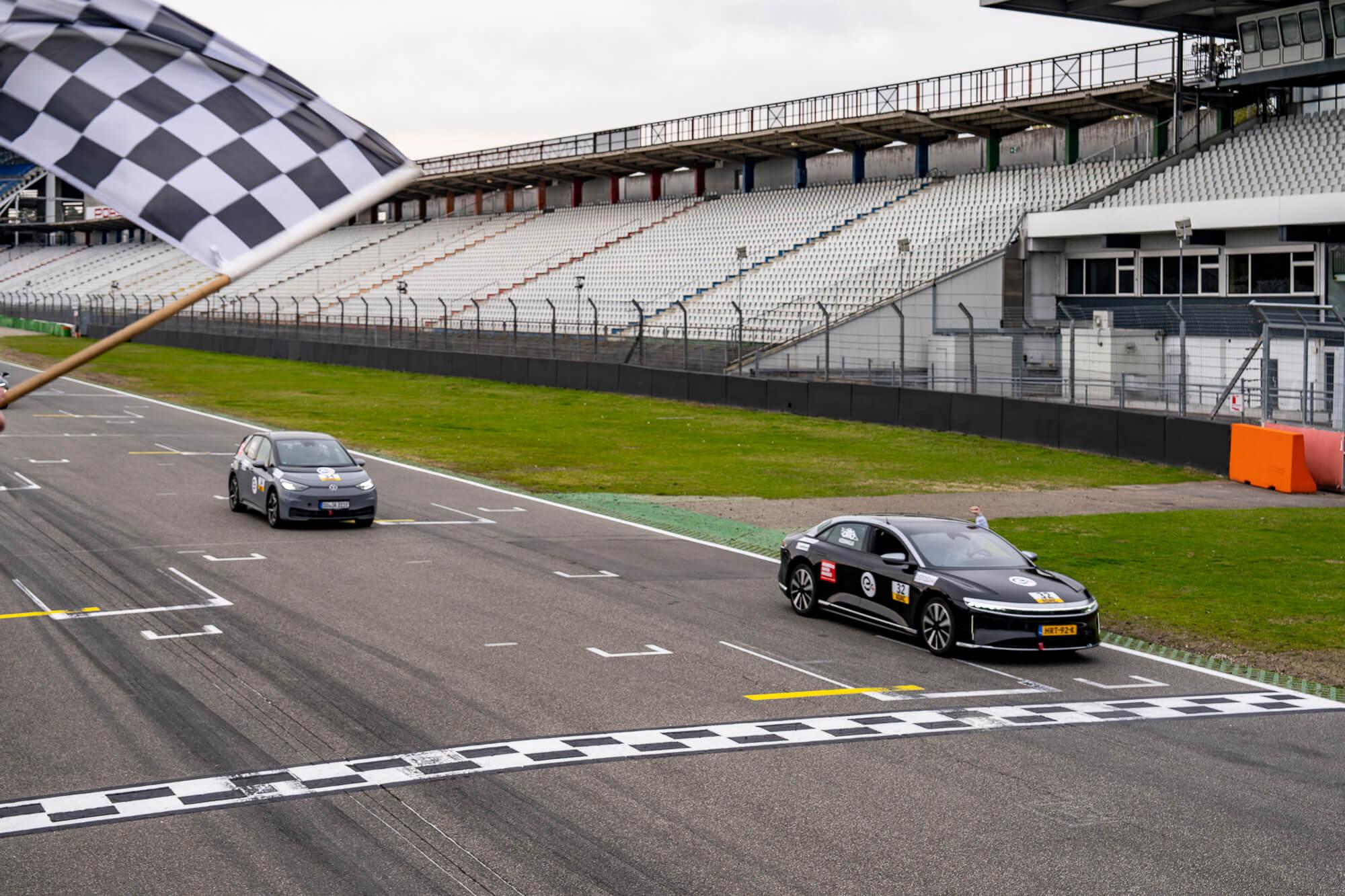 Gesamtsieg mit dem Lucid Air (bis 960 km Reichweite als Leihgabe von der Pressestelle Lucid) und die schnellste Rennrunde, sowie Klassensieg mit dem iD3 (bis 400 km Reichweite).